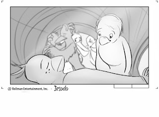 A few notes: The extreme wide shot of the flock flying toward the tree is not mine, but included for a little clarity. The resurrection itself was thumbnailed by a different artist, which I then cleaned up and added a few poses to. The rest of the boards are mine.